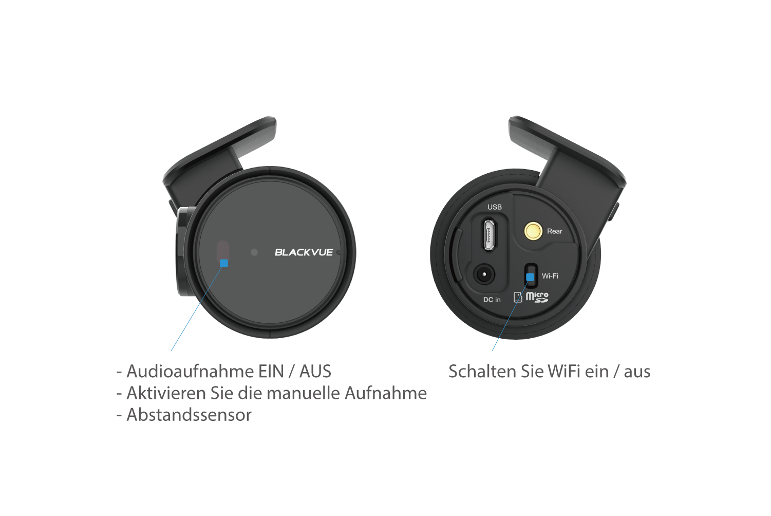 Wi-Fi: Bietet die Möglichkeit, Ihre BlackVue-Dashcam mit Ihrem Smartphone und / oder Tablet zu verbinden (maximal 10 m).