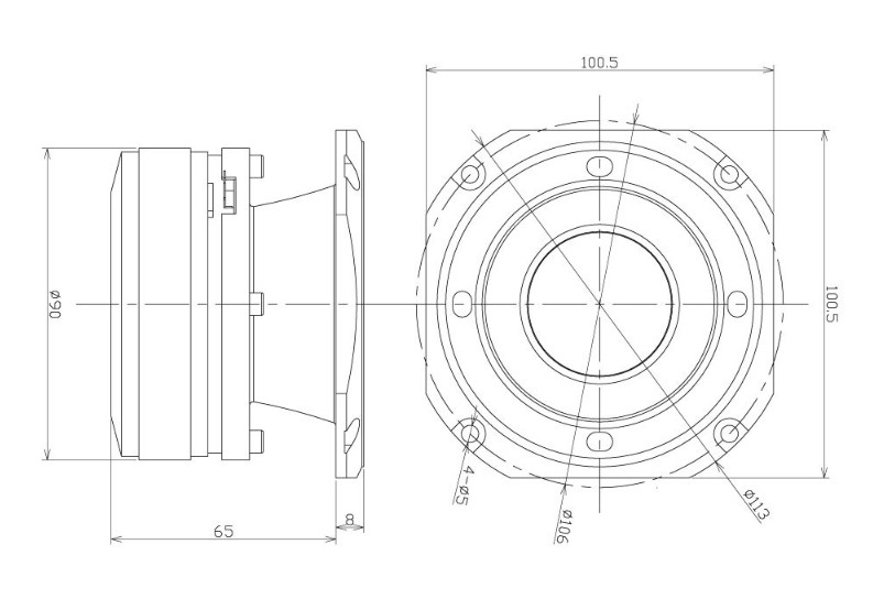 RTX4BTS, Compression Tweeter Voice coil diameter : 1.75“, Frame dimension : 100,5mm, RMS Power : 200W, Max Power : 800W, Sensitivity : 103,0dB/2v/1m, Impedance : 8Ω, Response : 2000Hz - 20000Hz, Mounting Depth : 65mm