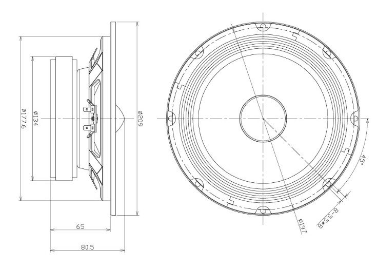 High efficiency midrange woofer • Diameter : 20cm (8“)