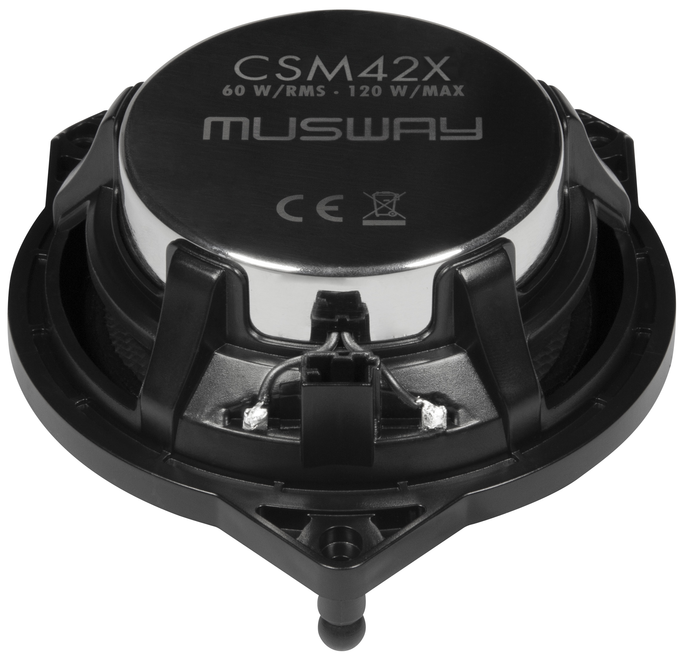 Bei den neuen CSM Lautsprechern für Mercedes-Benz Fahrzeuge stand während der Entwicklung ebenfalls eine deutliche Verbesserung des Klangs und eine höhere Belastbarkeit im Vergleich zu den Originalsystemen im Vordergrund. Superleichte Glasfaser-Membranen und effiziente Neodym-Magnet-Antriebe sorgen auch bei den CSM Modellen schon bei geringer Verstärkerleistung für wirkungsgradstarke Soundperformance. Bei den 20 cm Basslautsprechern wird dank der effizienten 38 mm CCAW Schwingspulen ein Schalldruck von stolzen 89 dB/W/m generiert. Die 10 cm Lautsprecher sind hingegen mit nicht gerade kleineren 30 mm CCAW Schwingspulen bestückt, die ebenfalls für grandiose Klangerlebnisse sorgen. Der 25 mm Titan-Hochtöner CSM1T (auch bei CSM4.2C enthalten) mit Neodym-Magnet Antrieb überzeugt mit linearem Frequenzgang bis über 20 kHz und kristallklaren Höhen.