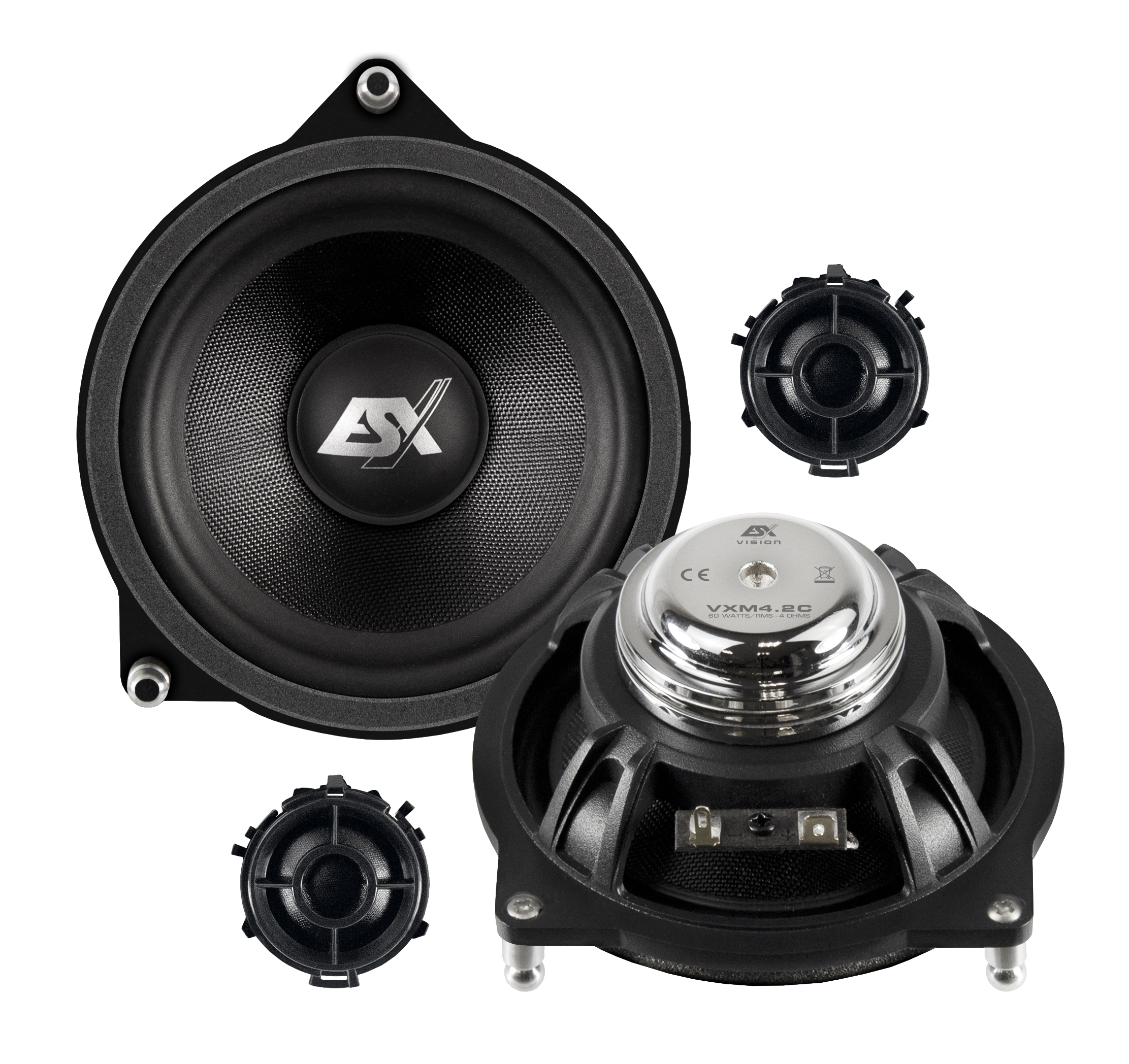 Da besonders im Mitteltonbereich eine sehr lineare Wiedergabe wichtig ist, werden bei den 10 cm VXM Modellen sehr leichte Glasfaser-Membranen eingesetzt. Für Front-Türen wird das mit separaten Hochtönern ausgestattete 2-Wege Kompo VXM4.2C empfohlen, für hinten das Koaxial-Set VXM42. Beide haben leichte Seidenkalotten für beste Hochtonwiedergabe. Der Center-Lautsprecher VXM40F kann dank der zweiten Schwingspule an das Mercedes SOS-System angeschlossen werden.