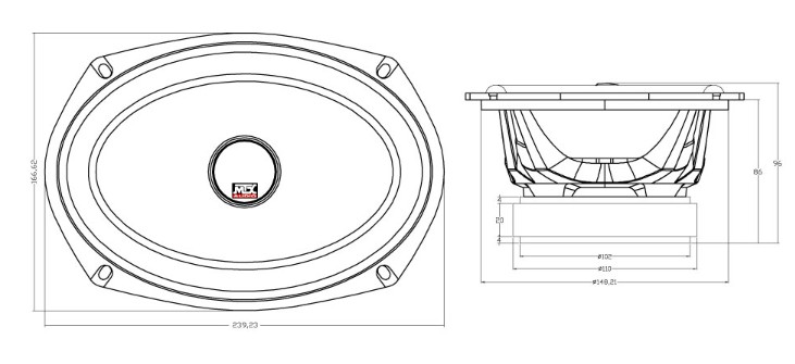 2-way coaxial speakers Diameter : 6x9" (16x23cm)