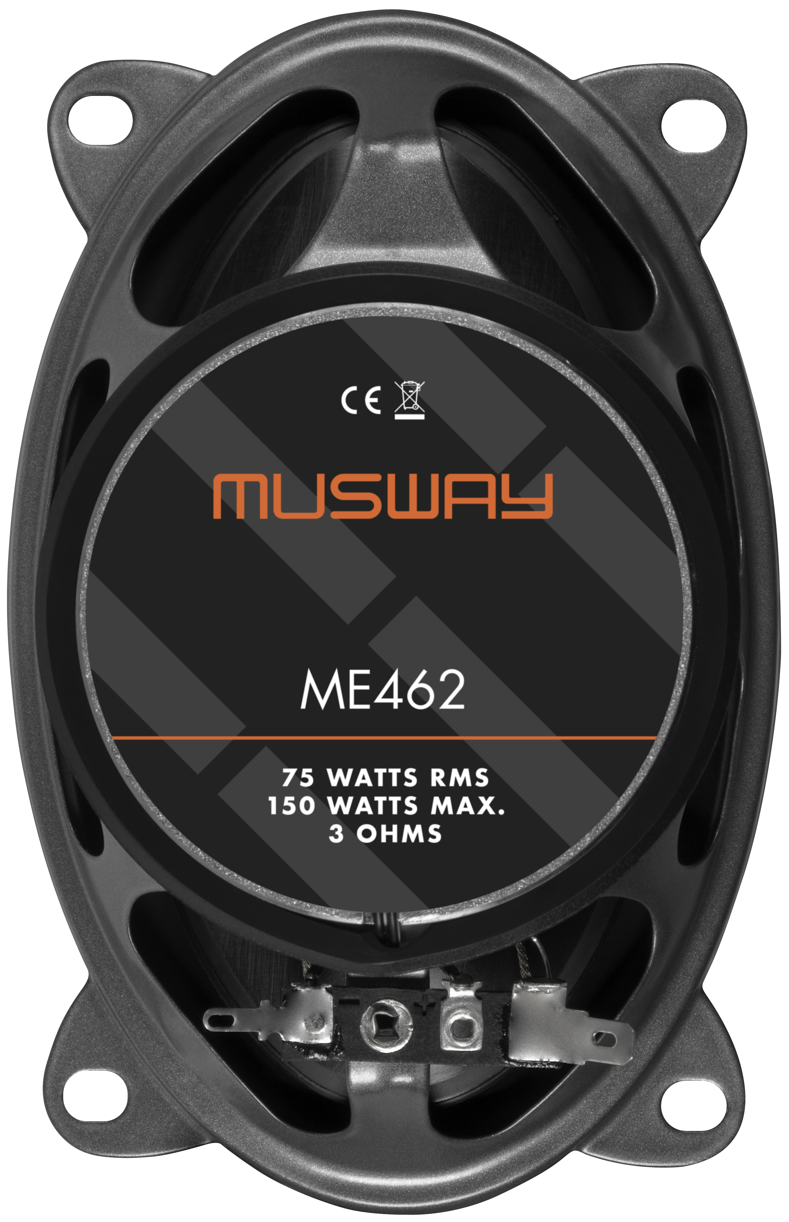 ME462, 10 x 15“ CM (4 x 6”) 2-WEGE KOAX-LAUTSPRECHER, 75 Watt/RMS, 150 Watt/MAX, Frequenzbereich 68 - 22000 Hz, Impedanz 3 Ohm, Polypropylen-Membranen, 20 mm Gewebe-Neodym-Hochtöner, Einbautiefe 48 mm, Einbauöffnung 89 x 141 mm