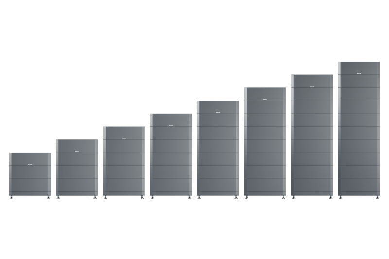 - Parallelschaltung von bis zu 8 Speichertürmen möglich (6,4 kWh bis 230,4 kWh Kapazität)