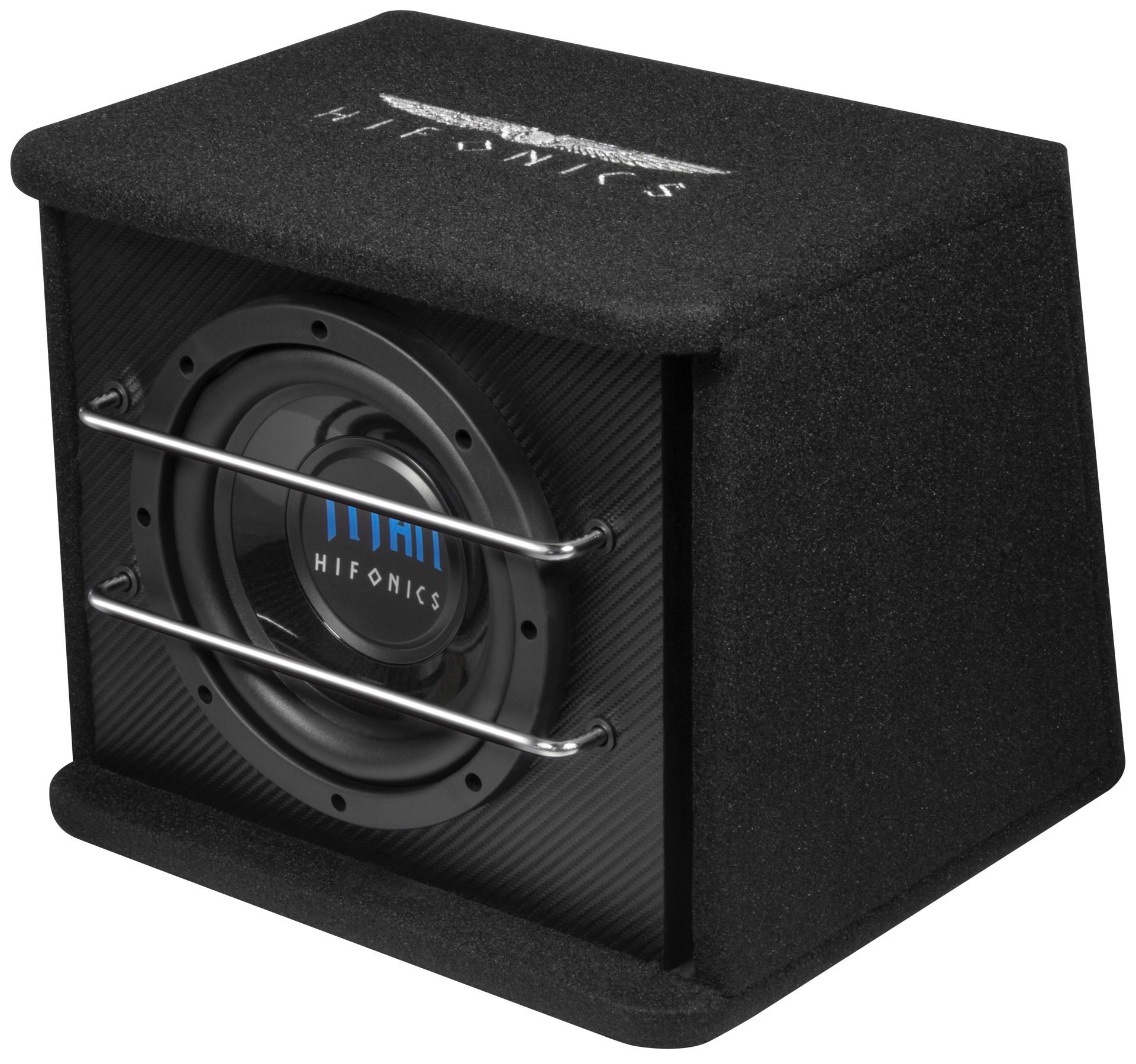 Die TITAN TD/TS Modelle mit 20, 25 und 30 cm großen Woofern und Bassreflex-Gehäusen, sind als Single- und Dual-Version erhältlich und komplett aus MDF gefertigt. Eine höhere Stabilität wurde durch Innenraum-Verstrebungen erreicht und die neuen TITAN Tieftöner liefern solide und bassstarke Pegel. Eine sehr leistungsstarke Schwingspule treibt die verstärkte Injection-PP Membran präzise an und sorgt so für einen tiefen und gleichzeitig druckvollen Bass. Auch optisch überzeugen die Subwoofer-Systeme: Die Chrombügel sorgen nicht nur für eine gefällige Optik, sondern auch für den nötigen Schutz des Tieftöners. Die Frontblende wurde in einem sehr edlen Carbon-Look foliert und der Bezug zusätzlich mit dem Hifonics Logo bestickt.