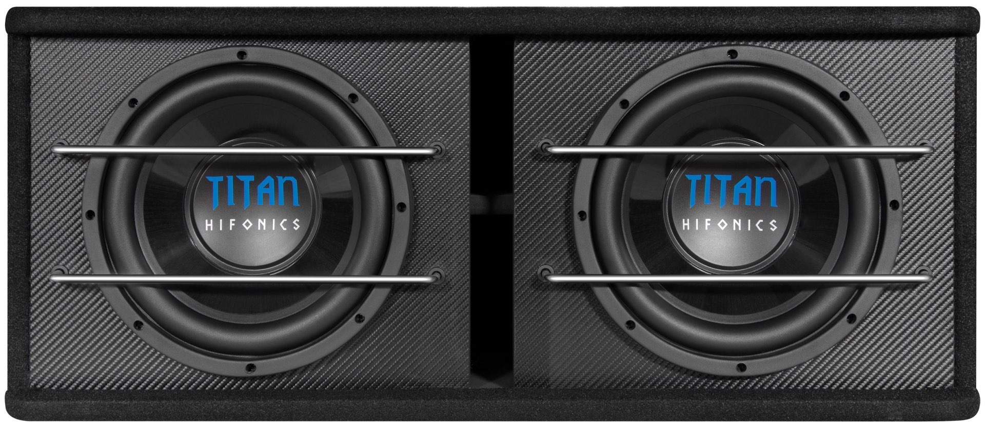 Die TITAN TD/TS Modelle mit 20, 25 und 30 cm großen Woofern und Bassreflex-Gehäusen, sind als Single- und Dual-Version erhältlich und komplett aus MDF gefertigt. Eine höhere Stabilität wurde durch Innenraum-Verstrebungen erreicht und die neuen TITAN Tieftöner liefern solide und bassstarke Pegel. Eine sehr leistungsstarke Schwingspule treibt die verstärkte Injection-PP Membran präzise an und sorgt so für einen tiefen und gleichzeitig druckvollen Bass. Auch optisch überzeugen die Subwoofer-Systeme: Die Chrombügel sorgen nicht nur für eine gefällige Optik, sondern auch für den nötigen Schutz des Tieftöners. Die Frontblende wurde in einem sehr edlen Carbon-Look foliert und der Bezug zusätzlich mit dem Hifonics Logo bestickt.