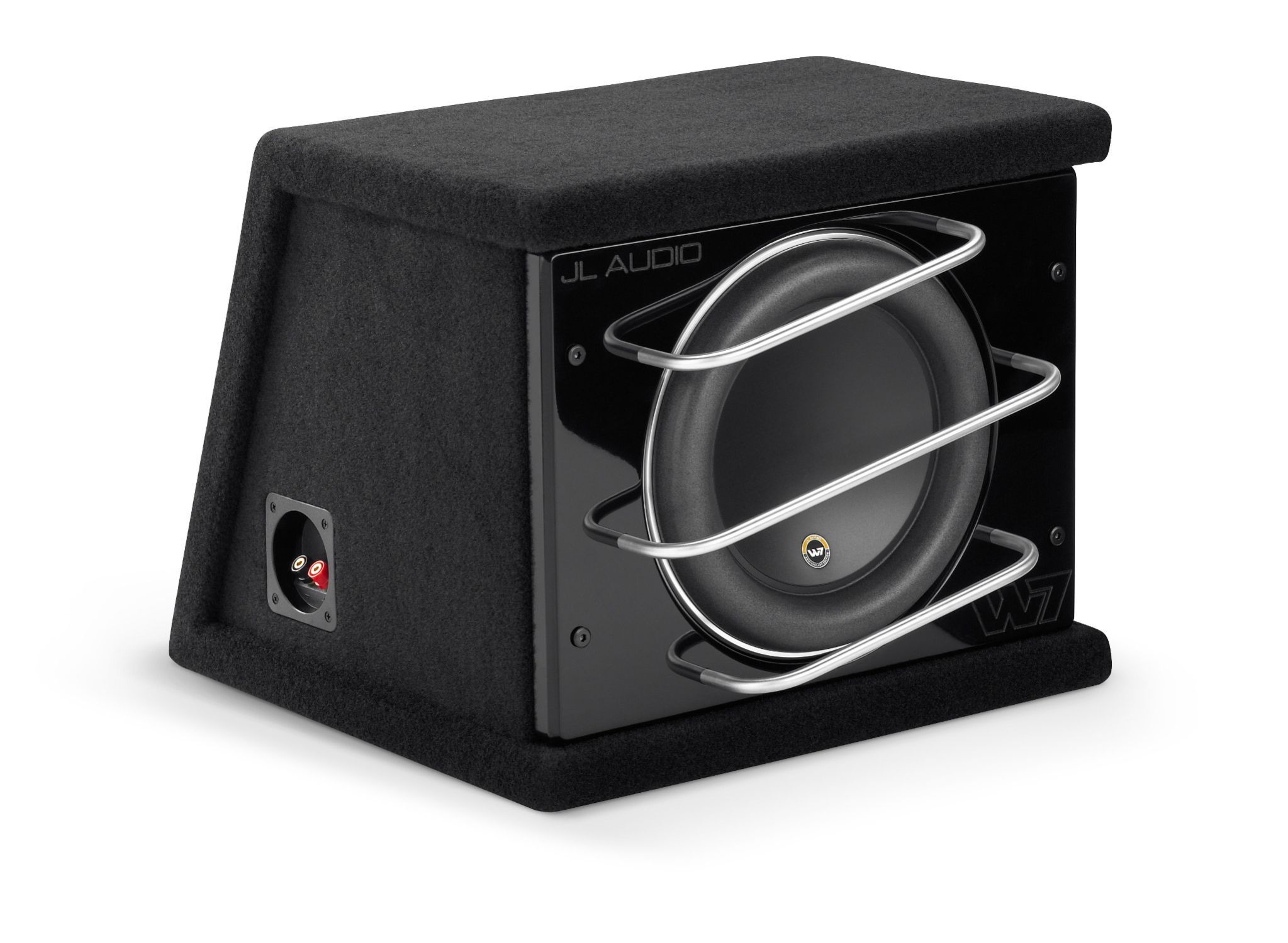 Gehäusesubwoofer-System mit einem einzelnen 10W7AE-3 Subwoofer, schwarzer Teppich (750 W, 3 Ω) - Versiegeltes GehäuseFür diejenigen, die die ultimative Subbasstreue in einem kompakten Gehäuse suchen, bietet JL dieses abgedichtete ProWedge™ System an, in dem die hervorragenden Leistungsmerkmale des W7AE Subwoofers in einem kompakten, abgedichteten Gehäuse genutzt werden. Dieses System hat alles: Ausdehnung, Wirkung, Detailtreue und gleichmäßige Wiedergabe... bei jedem Hörpegel.Dieses Gehäusedesign wurde sorgfältig auf die optimale Ausrichtung des abgedichteten Gehäuses für den 10W7AE-3 abgestimmt und durch ausgiebiges Hören unter realen Bedingungen verfeinert.Dieses Subwoofer-System wird verkabelt, bestückt und anschlussfertig über ein Fünf-Wege-Binding-Post-Terminal geliefert.Das abgewinkelte Design spart wertvollen Laderaum, da das Gehäuse eng an der Rückseite des Rücksitzes eines Fahrzeugs anliegt.Ausführung: Schwarzer, hochwertiger Autoteppich mit glänzend schwarz laminierter dekorativer Frontschallwandauskleidung. Drei massive Aluminiumstangen bieten stilvollen und robusten Tieftönerschutz.Konstruktion: CNC-geschnittenes, hochwertiges MDFEmpfohlene Verstärkerleistung: 300 - 750WNominale Impedanz: 3 Ω