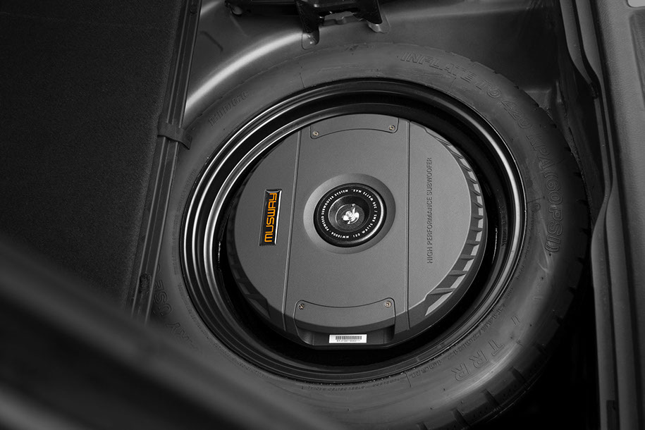 AKTIVES SUBWOOFER-SYSTEM MIT 28 CM (11“) SUBWOOFER FÜR DAS NOTRAD-FELGENBETT