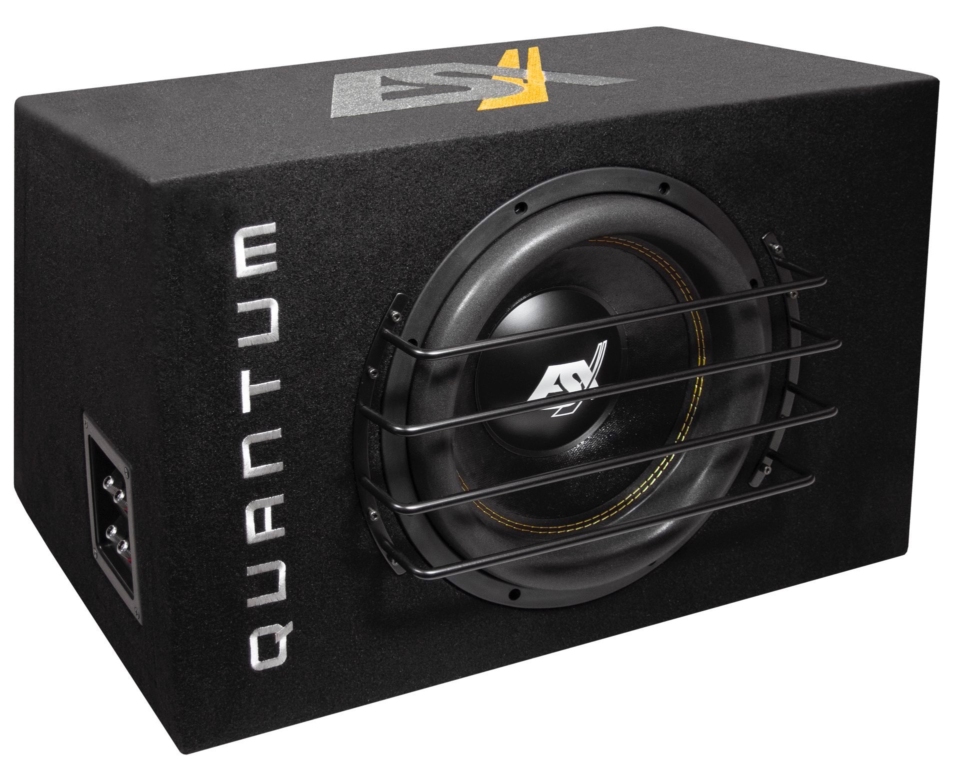 Sofort einsatzbereit ist die 32 kg schwere QXB12 Subbox. In einer sehr stabilen 18 mm MDF Box mit doppelter Frontwand von 36 mm(!) kann der eingebaute QXE12D2 im Fahrzeug richtig Pegel fahren. Der bündig eingelassene Woofer, der schöne Logo Stick und der seitliche Reflexkanal machen den QXB12 auch optisch zum Highlight. BRUTAL.