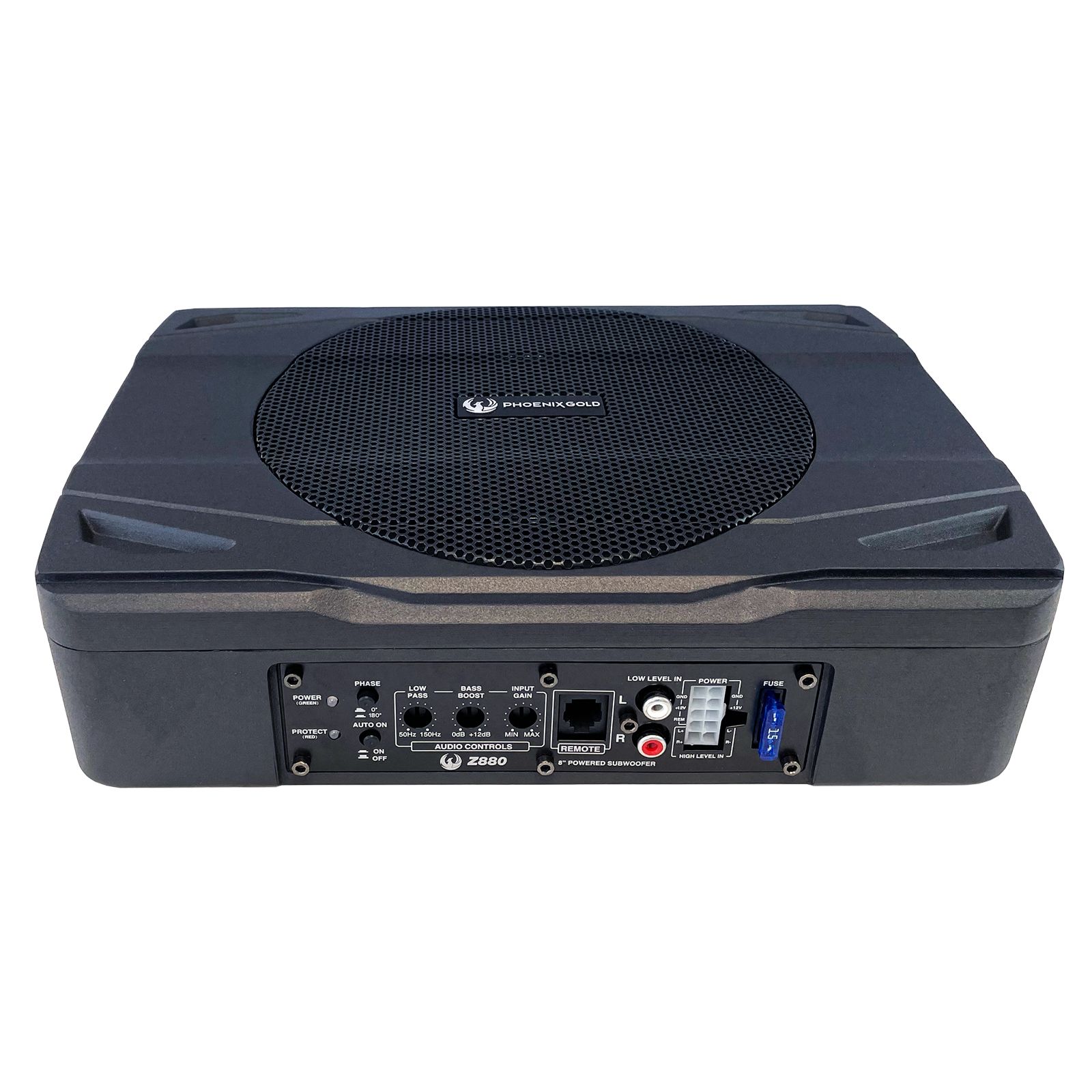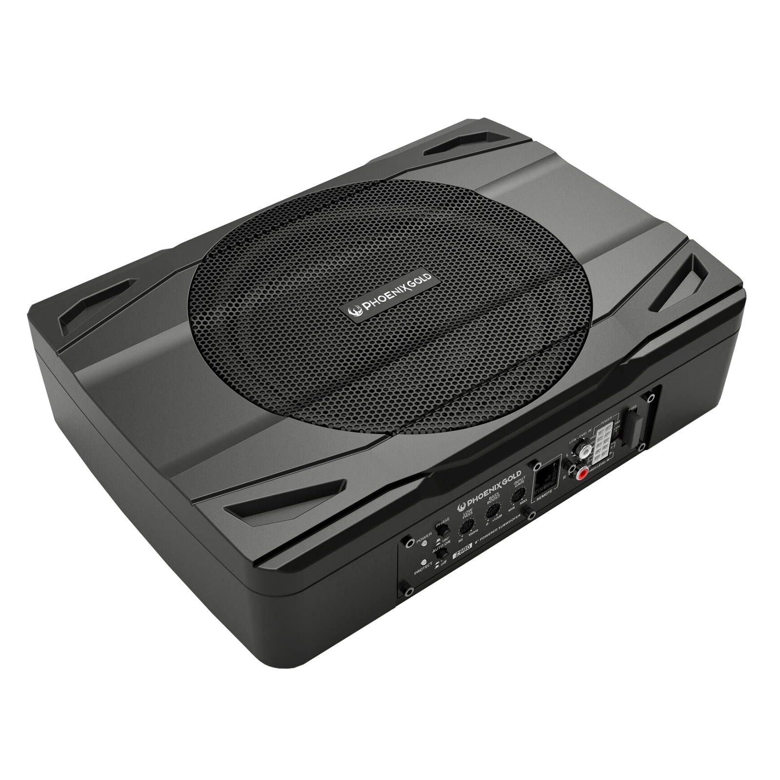Der Phoenix Gold Z880 ist ein ultrakompakter, aktiver 20 cm (8 Zoll) Subwoofer, der speziell für den Einbau in Fahrzeuge mit begrenztem Platzangebot entwickelt wurde. Dank seiner geringen Abmessungen von 290 mm Länge, 210 mm Breite und 70 mm Höhe lässt er sich mühelos unter Sitzen oder in kleinen Kofferräumen installieren. Das robuste Aluminiumgehäuse sorgt für Langlebigkeit und eine effiziente Wärmeableitung.