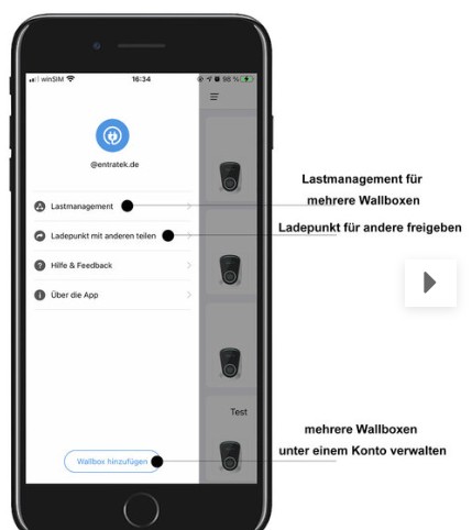 - Verknüpfung der Entratek Wallboxen miteinander und Fernsteuerung möglich